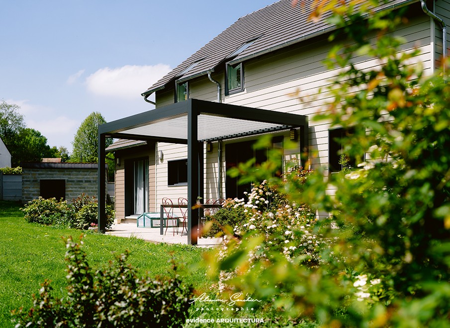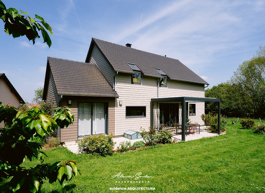 Il y a bientôt 10 ans que nous avions commencé à réfléchir à cette maison en structure bois, sur le plateau du Vexin, près de Vernon dans l'Eure. Diplômé HMONP depuis à peine 2 ans à l'époque, c'est à travers une collaboration avec Rémi Cellier, architecte DPLG, et l'entreprise Maugy, constructeur bois, que le projet a vu le jour courant 2016. Les photos de 2024, prises par l'artiste et photographe Aliaume Souchier reflètent avec élégance cette immersion en pleine nature, loin de l'alignement sur rue habituel dans ce village normand.